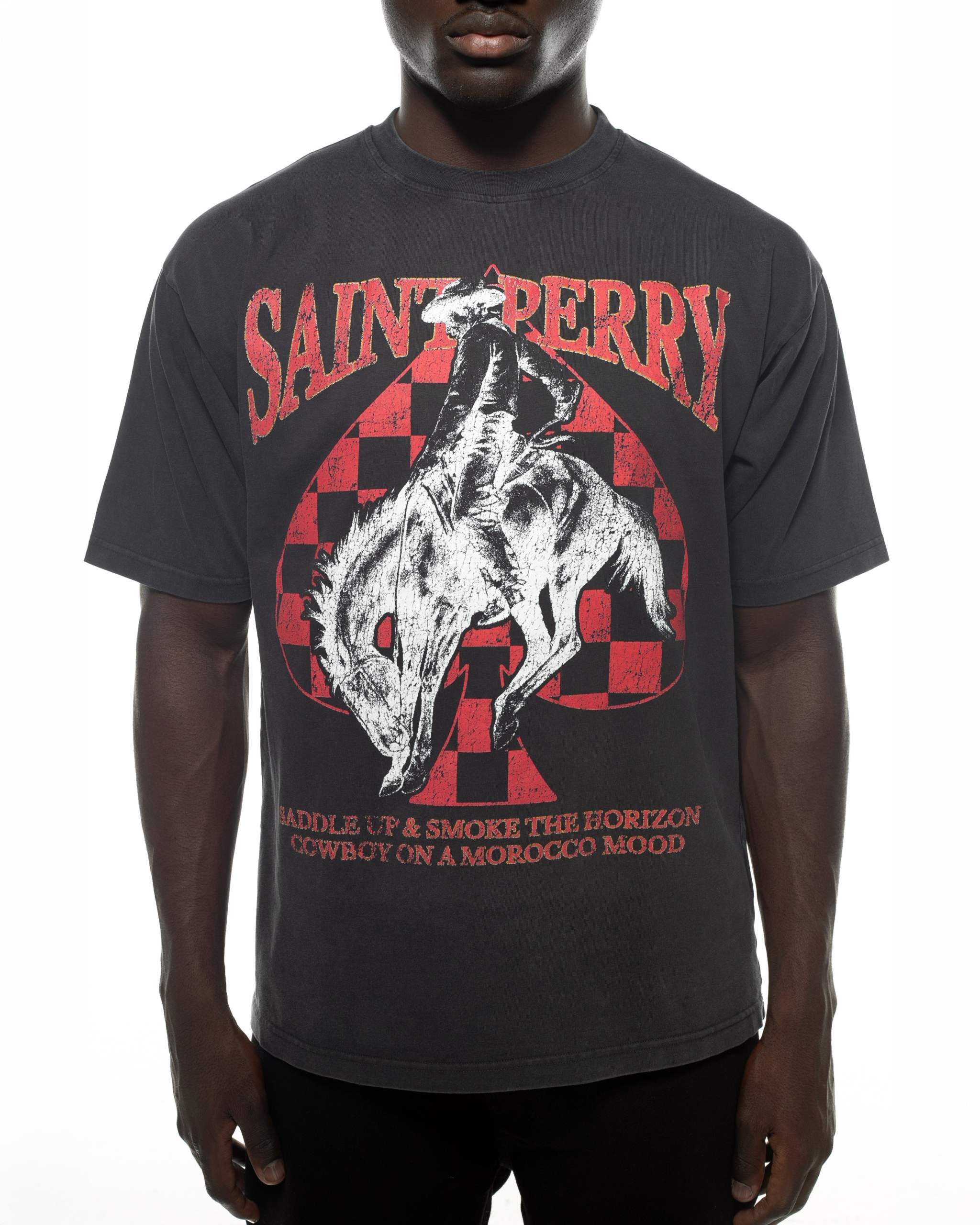 “In dim motel rooms, across open highways, and through the hum of late-night studios, The American Afterglow captures Saint Perry’s vision of decadent imperfection. Cashmere and denim meet candlelight and static. Every look is a memory — raw, refined, and restless.”