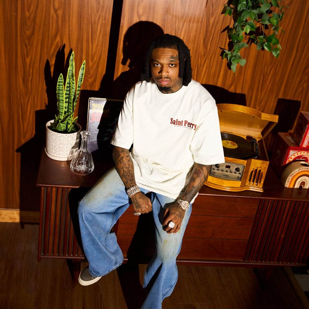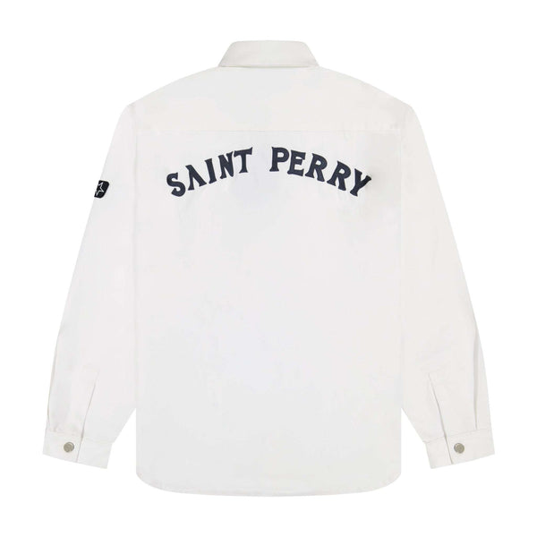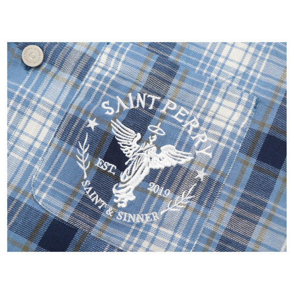 The Saint Perry Blue Distressed effect short denim are rugged streetwear jeans crafted from sturdy denim. They feature a baggy wide-leg design with strategically placed rips, distressing, and whiskering for a worn-in look with a touch of rugged charm. Additionally, they have a visible logo embroidered on the rear pocket.