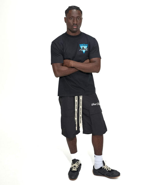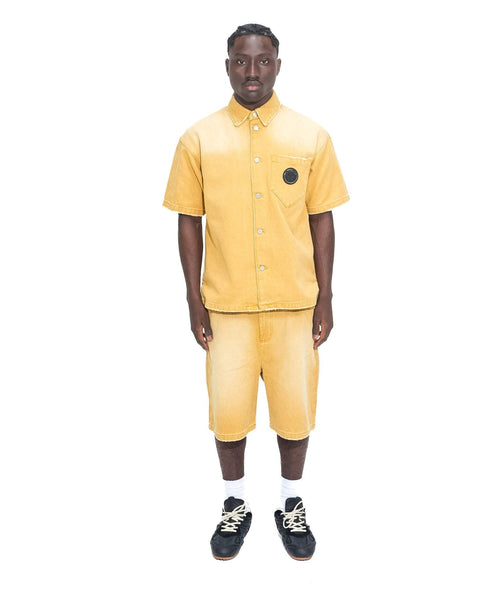 The Distressed Effect Short Denim embodies Saint Perry’s rugged streetwear attitude with a refined edge. Crafted from 100% premium cotton denim, these shorts feature distressed detailing and rip accents that deliver a lived-in, urban aesthetic. Distressed effect short denim Designed for comfort and versatility, the Distressed effect short denim relaxed silhouette pairs perfectly with graphic tees or structured shirting. Distressed effect short deniminished with logo embroidery at the pocket, Distressed effect short denim piece reflects Saint Perry’s signature blend of craftsmanship and contemporary style. Distressed effect short denim