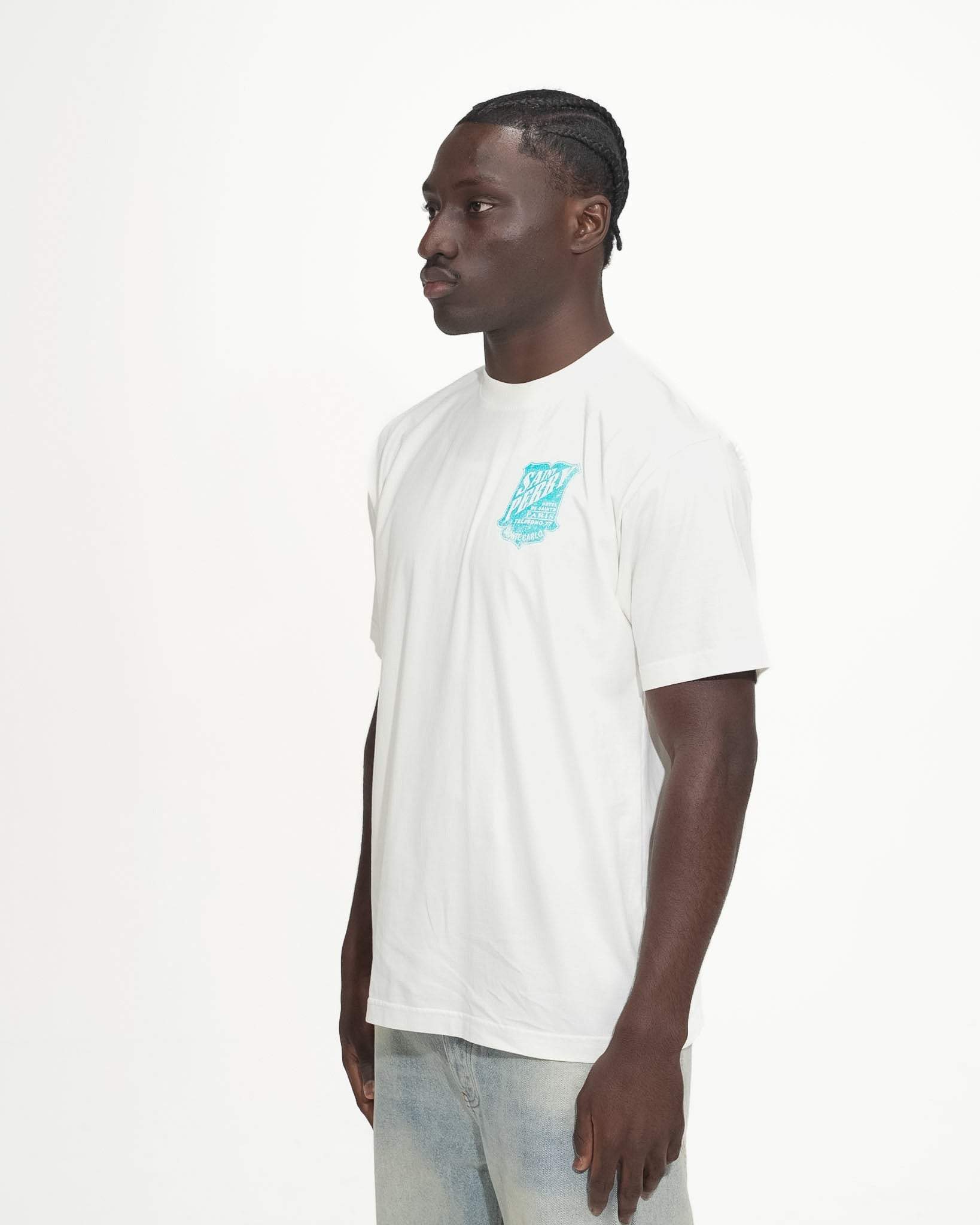 Embroidered Saint Perry logo at pocket